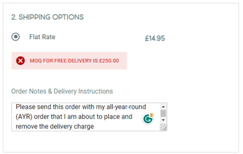 We'll do the work on our end to combine the orders and remove your delivery charge *if both orders together reach our £250 MOV. You'll receive both orders in one delivery but with 2 separate invoices.